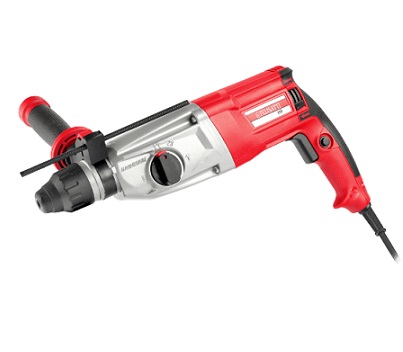 Зажимной патрон SDS plus гарантирует быструю и надёжную замену оснастки, а электронный выключатель с регулировкой частоты вращения и ударов позволяет точно контролировать процесс бурения, что особенно важно при работе с хрупкими материалами или при начале сверления.