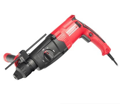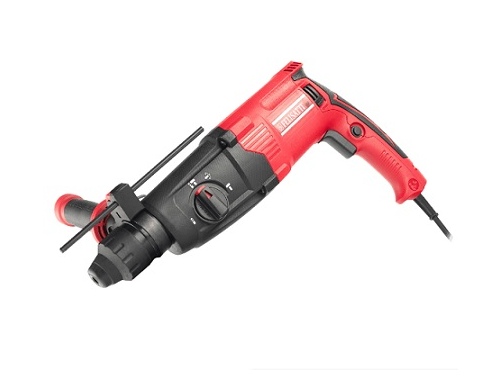 Инструмент оснащён зажимным патроном SDS plus, обеспечивающим быструю и надёжную фиксацию оснастки. Электронный выключатель с регулировкой частоты вращения и ударов позволяет точно контролировать процесс работы, а кнопка фиксации пуска облегчает выполнение длительных задач, снижая утомляемость оператора.